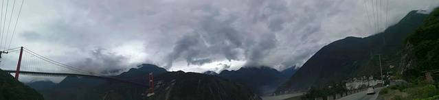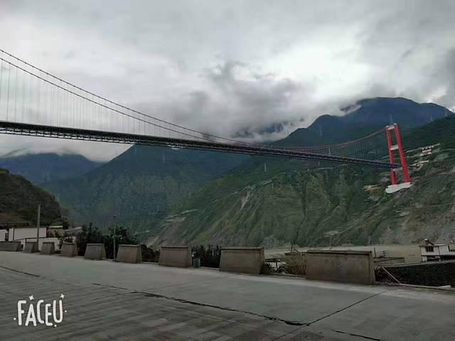 路径兴康特大桥(泸定大渡河大桥)发现从下面看整个大桥显得更加雄伟。大桥横跨两山下面便是滚滚流淌的大渡河水,使我不禁感叹“没有什么事能难得倒中国人!”民族自豪感油然而生。
