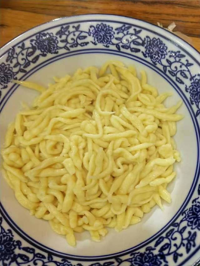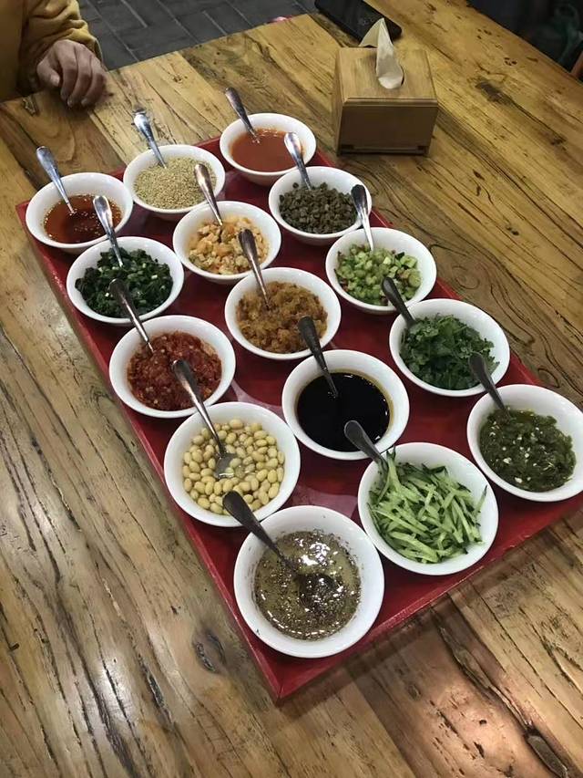 晚饭找的这家店就代表着当地的特色,抿节。一种粗粮细做的传统面食小吃。 抿节用的面是由豌豆和小麦磨合而成的杂面,将和好的面团放在密布筛孔的特制抿节床上,用手掌抿压而下,成一寸来长的小节,呈扭曲状。食时,将抿节下锅煮熟,浇以素汤或肉汤,汤内有豆腐丁、土豆丁、豆角丁等,并佐以韭黄、芝麻、辣酱、香菜等,其味清淡可口,带一股豆香味。