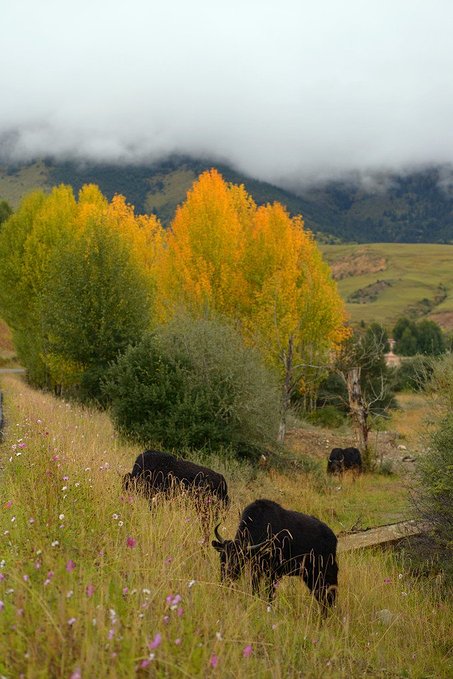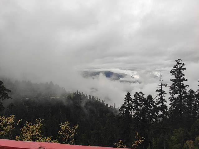 由于昨天晚上下了雨,早晨的鲁朗林海被雾气所包裹别有一番韵味。(一夜的小雨让我们下榻的客栈房间又潮又冷,小伙伴们都没睡好!)