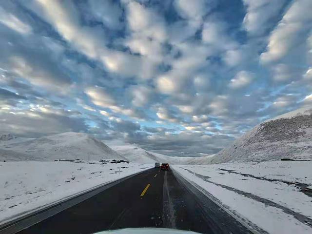 这一路上除了海拔低的雅江县城全是白茫茫的一片。小伙伴们也无心观景,路过剪子湾的天路十八弯和卡子拉山垭口这种知名打卡地,也只是匆匆拍照了事!