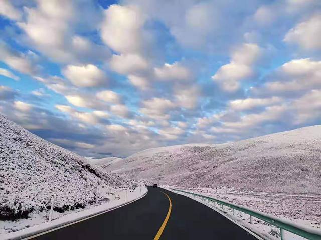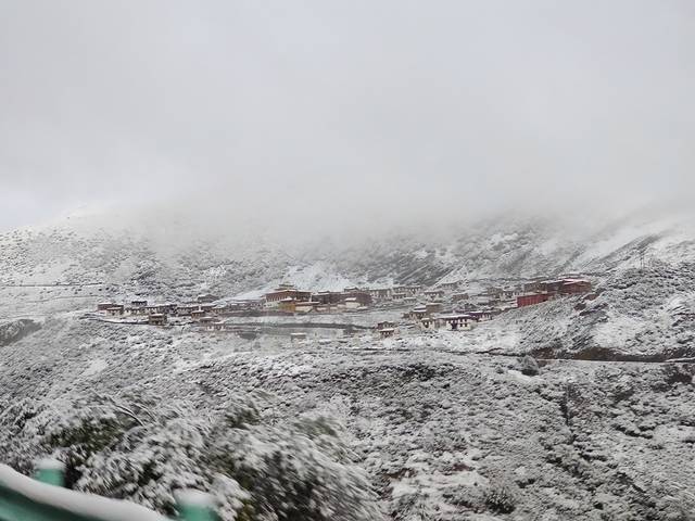 今天的目的地是稻城。由新都桥沿国道318线径理塘县转省道217线到达稻城,全程341公里。稻城纯粹的落脚点,在这里住完全是为了第二天去亚丁!(路况消息说折多山因大雪封路很多进藏的车都滞留在那里,这么看我们还挺幸运的!)一早起来天空飘着雪花,我的心情也随着这天气转向阴霾。折多山初见大雪由于新鲜都还挺激动,看着雪景也是美的!可是如果赶上连续雨雪天气,那这次旅行可就泡汤了。我隐隐感到其他小伙伴也有这样的担心,可谁也不敢说明,怕影响团队的士气!
