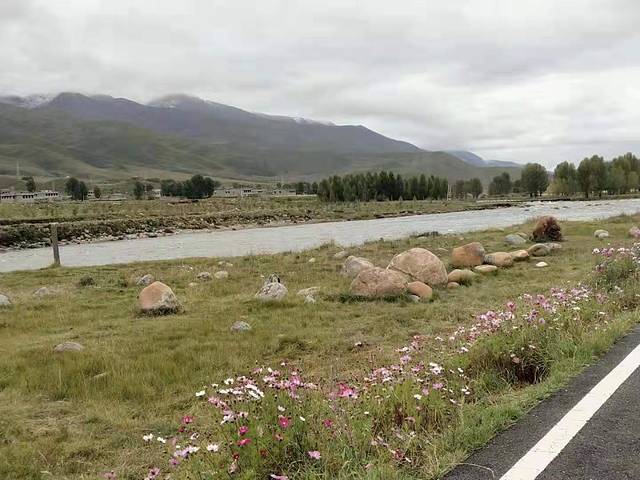 我们在理塘县简单吃了个饭继续出发。随着我们前行的步伐,沿途的地貌景色开始不断变化,草甸、大石头围成的一个一个小海子、清澈的小河伴着鲜花、美丽而神圣的塔林可以说每翻过一个垭口另一面的地貌景色都不尽相同!真是太美了!