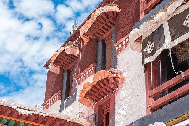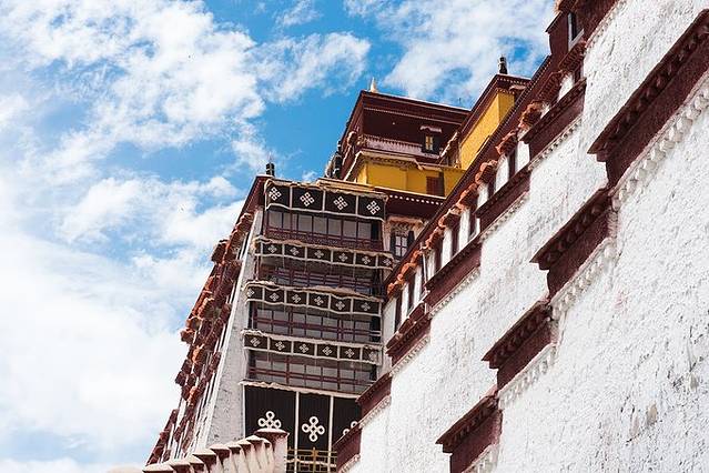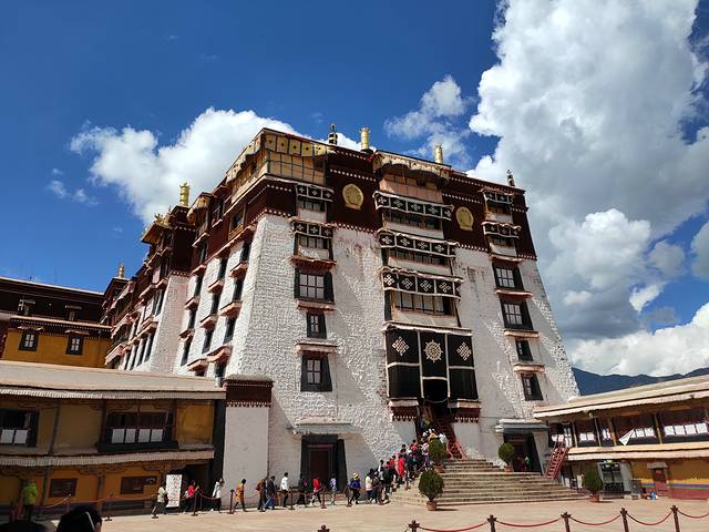 布达拉宫依山垒砌,群楼重叠,是藏式古建筑的杰出代表据说源于桑珠孜宗堡,中华民族古建筑的精华之作。主体建筑分为白宫和红宫两部分。主楼高117米,外观13层,内为9层。布达拉宫前辟有布达拉宫广场,也是世界上海拔最高的城市广场。