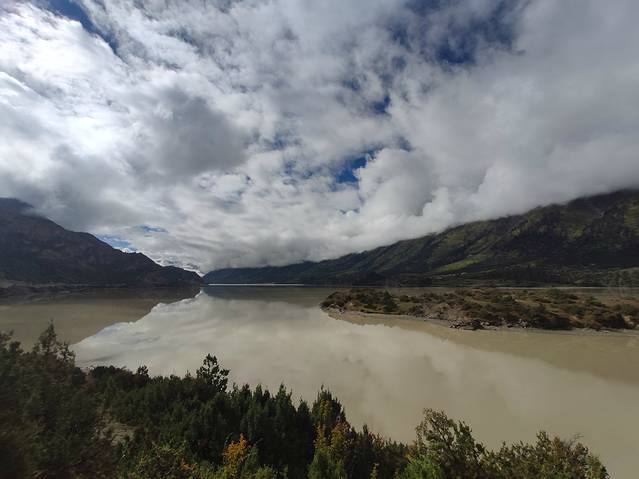 来到然乌湖我有点小失望,跟来前查资料的照片差距有点大!心想这是然乌湖还是污染胡啊?不知道是不是季节的原因,然乌湖的湖水很浑浊,湖水里都是泥沙。大家注意:你如果用手机导航的话,它会指导你由国道318转省道201走大概8公里的观景点。我个人认为,如果您也是这个季节来然乌湖,完全不用多绕这来回16公里的路,因为在国道318也能看到然乌湖很大一片水面,顺路停停看看就挺好。