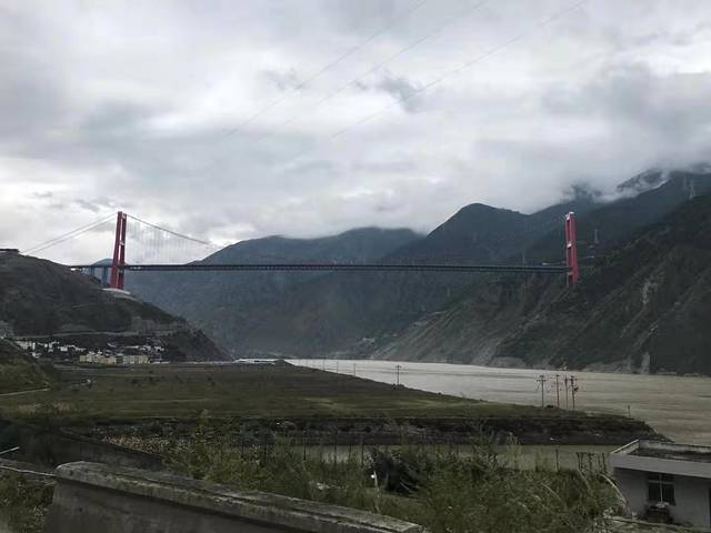 我对泸定桥的了解都源于课本和影视剧对红军飞夺泸定桥描写与演义。真正站在桥上我才知道什么是天险,这座桥就是由十三根铁链和木板组成可以说非常简陋,走在桥上可以透过木板的缝隙看到桥下大渡河水滚滚而过,湍急的河水裹挟着泥沙发出“隆隆”的声音,我的小腿不由得发沉!想想当年红军22位勇士攀着铁索冒着枪林弹雨勇夺泸定桥的壮举,不禁唏嘘!