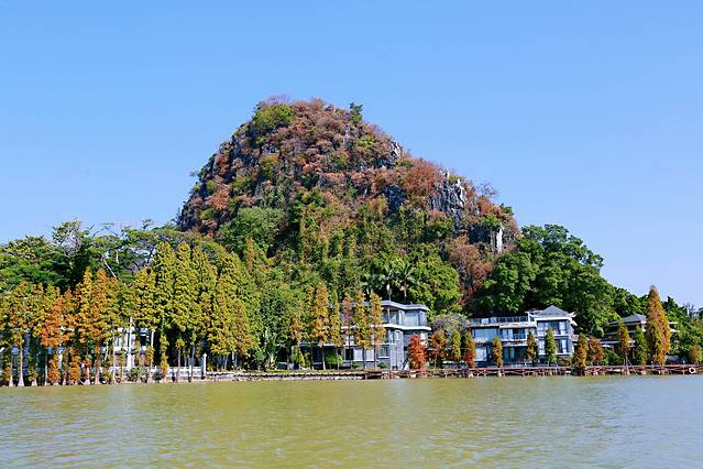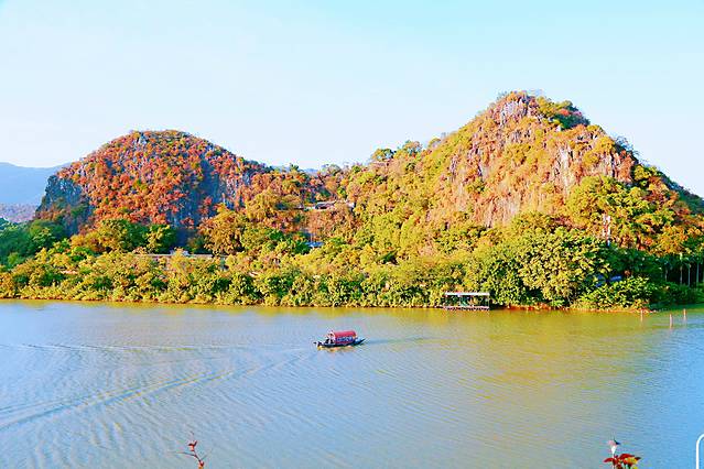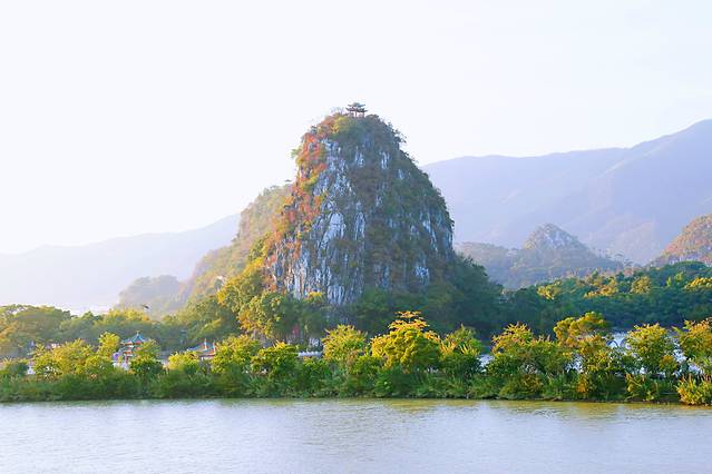 从七星岩出来,再坐船游览星湖。这么美丽的湖,不游船实在可惜了~泛舟湖上,欣赏秀丽山峰,一草一木一亭都让人移不开眼。还能看见对面的民宿,如果再来点烟雨朦胧,画面就更仙了。