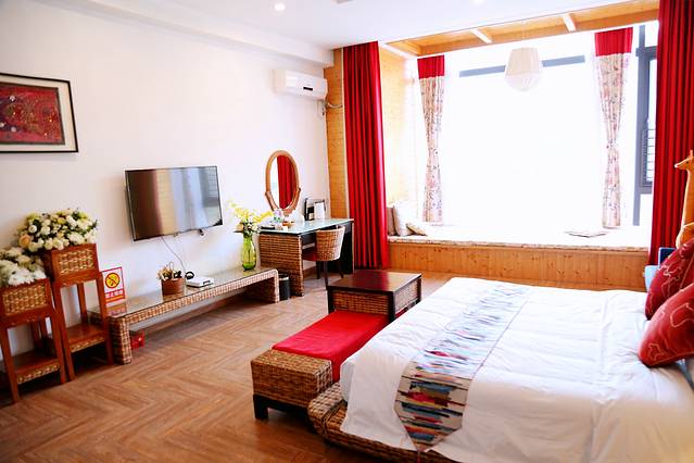 涟岸湖居民宿坐落于七星岩核心景区,青莲湖边的岩前半岛上,面积不大,一共14间房,但所有房间都能拥抱七星岩无敌湖景!这就是我选择它的理由!