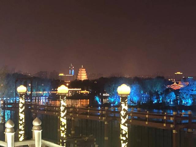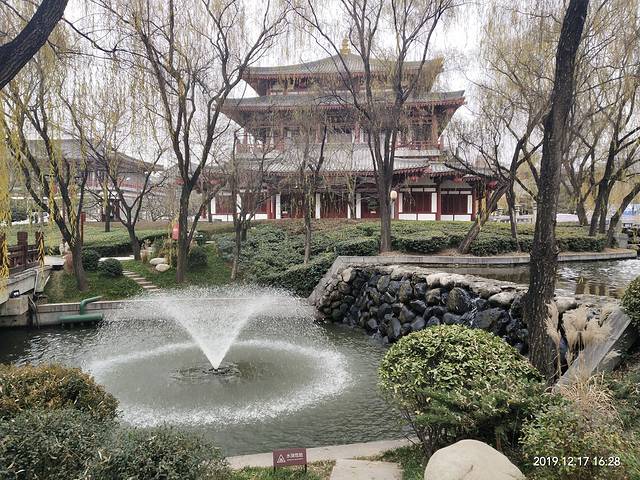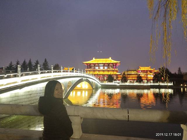 从大雁塔沿着街道溜达到大唐芙蓉园,她是个现代人为的景观,里边分为好多区域,将大唐的园林宫殿呈现给现代人观赏。因为冬季,芙蓉园的主题丽人行歌舞表演取消了,有点遗憾。只是随便逛逛。冬日的芙蓉园,竹青水绿,待到晚上,灯火辉煌,加上紫云殿前的灯光喷泉表演,将芙蓉园的大气磅礴彰显的一览无余。