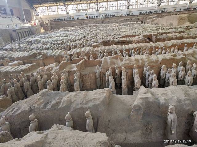 兵马俑和华清池同处于临潼地界,总共三个佣坑可以游览。这里展现了秦始皇庞大的地下兵团。一号佣坑最大最壮观。里边排列着众多兵佣,千人千面,据说每个兵佣的面部表情都不一样。但大致都是国字脸,单眼皮,高颧骨。二号佣坑展示柜里有将军佣,跪射佣等可供近距离观察。可看到跪射俑身上铠甲颜色尚在。三号佣坑多出土高级军官佣,这里相当于指挥部。秦之兵马俑真是可敬可叹,敬的是古代工匠手艺精湛,叹的是秦始皇的强大执念。