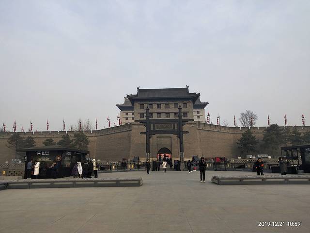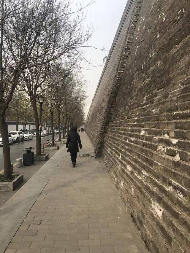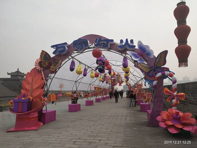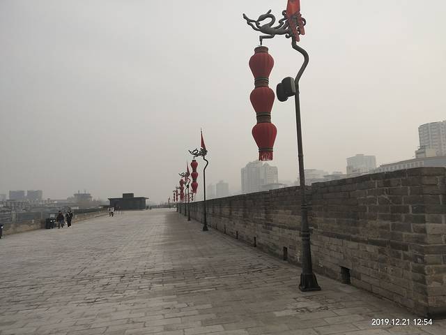 明代的城墙,高而牢。可以从任何一个城门登上,踏着厚厚的砖石,将古老而厚重的西安城收入眼底。脚下每个砖面上都刻着工匠的编号。城墙上可以步行,也可以选择自行车游览。从南门永宁门向西溜达,途径一段挂着各种花灯,都是陕西各小学生的大作,应该是为了迎接新年而做。漫步在城墙上,很惬意,旅行的最后一日游览,再好不过啦。