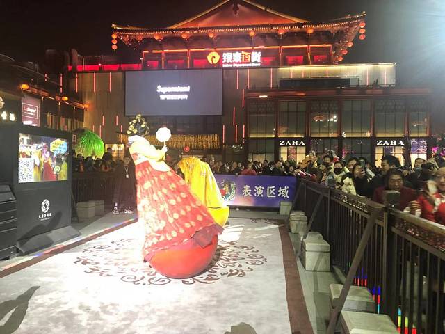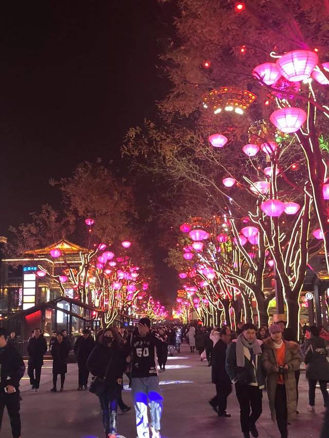 从芙蓉园出来时间尚早,去了大唐不夜城。唐朝是宵禁的,今日之大唐不夜城显示的应该是古时上元佳节灯火通明下的大唐吧。也不知道是不是应景,近日出了一则新闻,唐朝太平公主第一任丈夫薛绍的墓被发现。让人不禁想起了红极一时的电视剧大明宫词,少女太平初遇薛绍的画面,竟也是在那上元灯节,长安街头熙熙攘攘的人群之中。景色本无情,是人赋予了它感情。不夜城很美,让人有着对古时大唐的无限遐想。