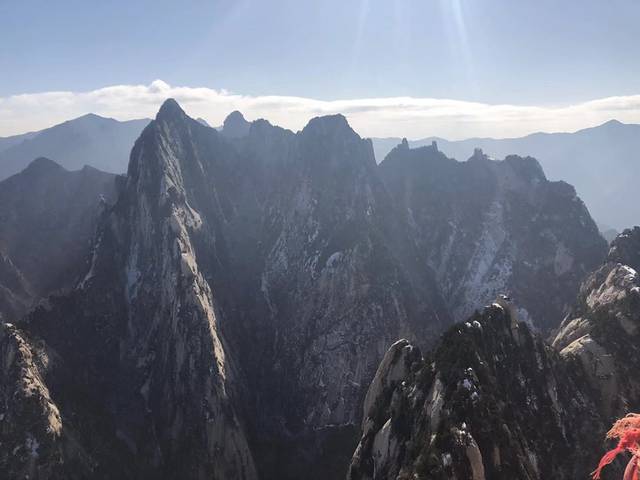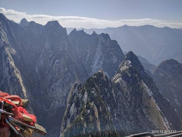 来到华山大门,我们打算西上北下,入山坐环保车,然后缆车到西峰脚下。华山并不高,但以险峻著称。从西峰下来可以去南峰走长空索道。当然,我们上了年纪,比较惜命,没去南峰,而在岔道路口中峰,折返回来走东峰。然后一句向北,来到北峰。北峰是华山精华所在。这里路上有奇松怪石,登上峰顶将落日收入眼底,坐北峰索道下山回西安。诸峰之间并不远,而且每个山峰都不高,体力好的人完全可以一天之内,全部登顶。