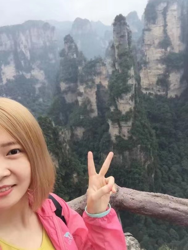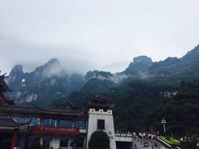和天门洞合张影,但是我穿的比较休闲,但是为了看到更好的景色,我专门去配了一副眼镜。然后女孩子一定要化妆,或者涂防晒霜,因为山上的紫外线特别强!