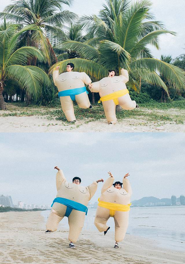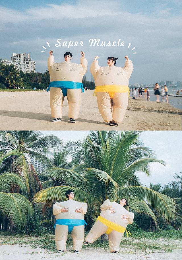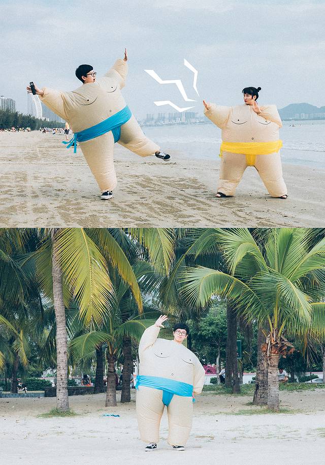 穿上可爱的相扑服,我们就是这条海滩最靓的仔!