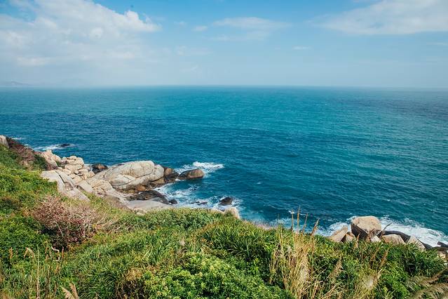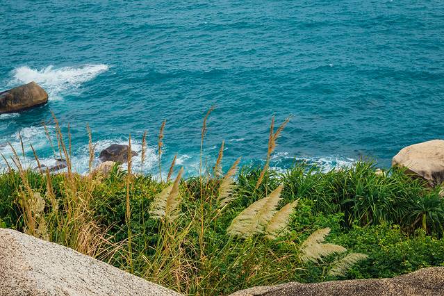 因为这里视野好而得名,这里的巨石想个大海龟,→_→图中就是它的龟头了,每次潮起潮落,就好像是大海龟在往海里爬啊爬,仿佛要爬回自己的家乡……所以这里也叫“金龟探海”。