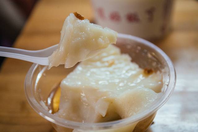 椰丝糯米粑,一口咬下,粘蜜的糯米带着香甜的椰子肉,在嘴里四处乱窜的软糯口感,让人愉悦而满足。不喜欢甜食者可能会觉得有点甜腻,吃一几口酸糕冷静一下。大约4元/个