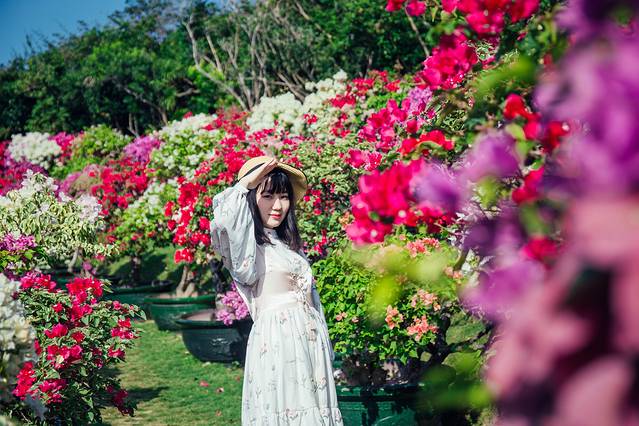 车停放在景区,需要步行一小段路程才能抵达鹿回头的售票大门,一路上被疯长的三角梅所吸引。