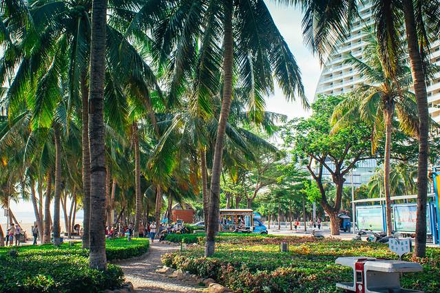 椰梦长廊是我们每次来 三亚 都会去的地方,这个名字真是梦幻又贴切,大约20公里的滨海长廊,种满了椰树和热带植被,与银色的海滩、蓝色的大海相映成趣,像是一幅色彩斑斓的长卷画图。