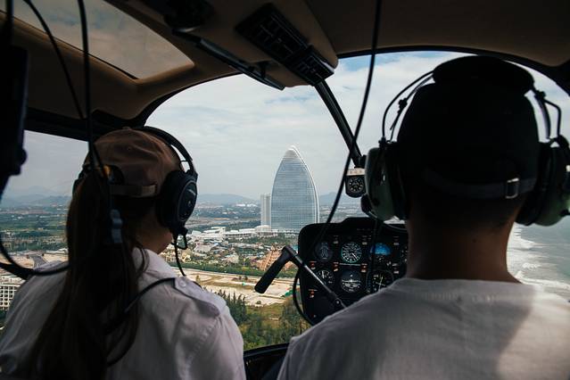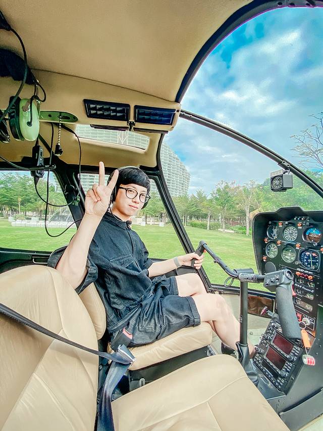 直升机缓缓降落,停在草坪,机长邀请我们坐上直升机。为了保护耳朵,我们必须要戴上耳机,机长也会通过耳机的麦克风给我们传达重要的信息。眼前飞机上精密的仪表,可能是我这辈子这么不会看懂的高科技。