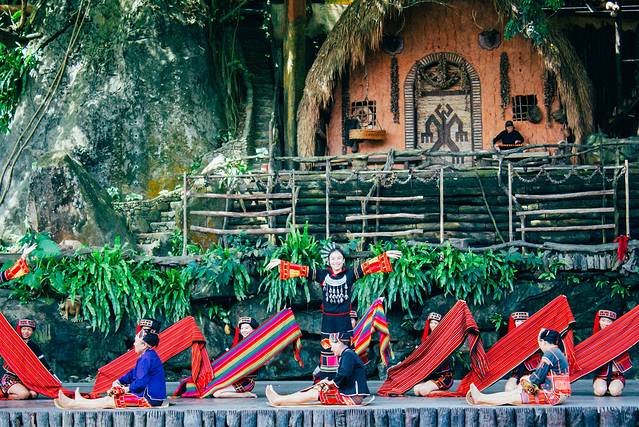 大概十二点多会有一场演出《槟榔·古韵》,很多年轻的小伙子小姑娘的表演,主要是讲诉情窦初开的人儿们是怎么从对歌到恋爱再到娶亲的全过程,整体氛围很欢快壮观,非常精彩。