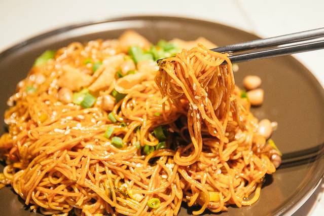 白切羊肉是带皮的,肥瘦相间恰到好处。作为一名减肥中的吃货,这肉看着确实有些腻。BUT!一口下肚,可以用根本停不下来形容:肥而不腻、食无膻味、肉质鲜美。完全一点羊肉的膻味也没有,而且也没有任何去膻味的辅料味道,小梦强烈推荐!