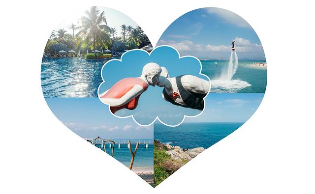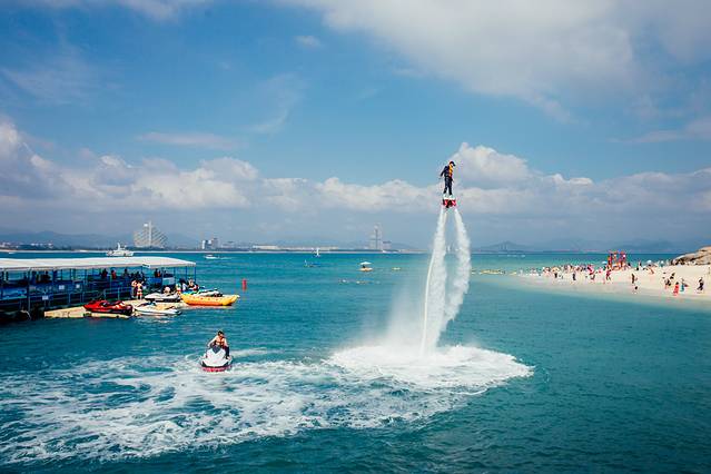 小梦真心推荐大家来 蜈支洲岛 ,海滩礁石绝对不输国外,沙滩柔软绵长,丰富的热带植物。在这里你还可以体验多种海上娱乐活动:摩托艇、香蕉船、水上降落伞等。