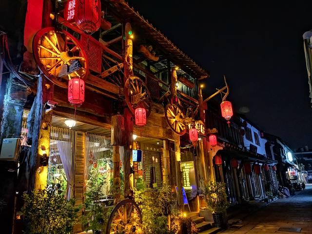 酒足饭饱后,踏上了夜游古镇之路。冷风瑟瑟~