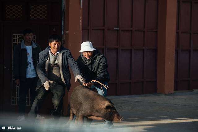 偶遇几个大哥满头大汗在抓猪,这欢乐的场面让人忍俊不禁!一只体型不大,四肢粗壮,毛发黢黑的猪,正准备越狱!