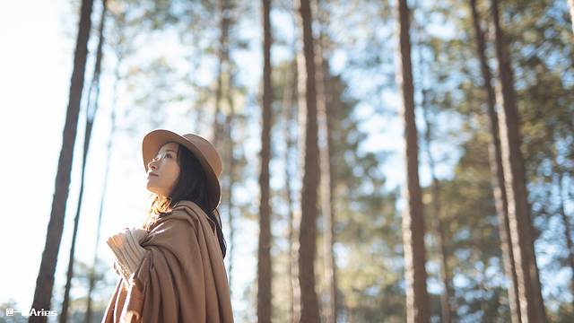 大光圈还可以将环境虚化,拍摄照片选景时可以巧妙的利用一些颜色好看的前景,为照片增加氛围感、层次感和颜色哟!