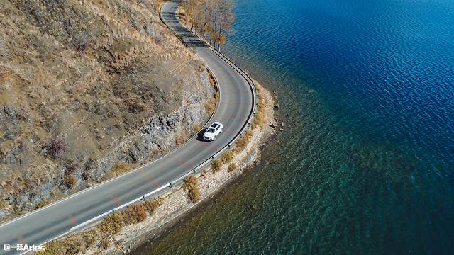 从达祖码头出发,逆时针绕湖,金黄的柏杨与湛蓝的湖水,上演着冬日恋歌,窗外湖景美不胜收,恍然若梦镜!