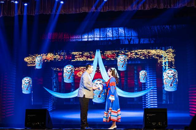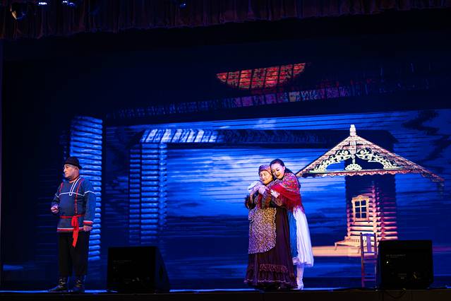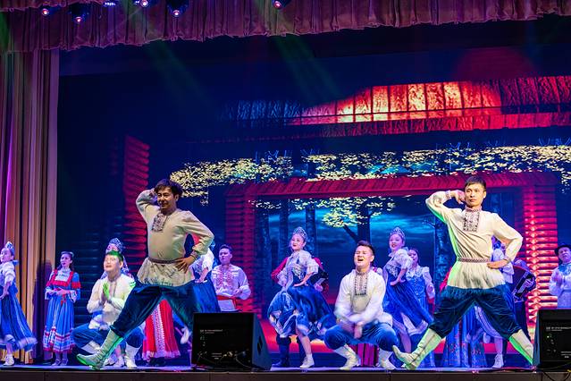 晚饭后,我们看了一出音乐剧。《额尔古纳之恋》是以中国俄罗斯族为题材的第一台舞台剧,故事原型来自于额尔古纳华俄后裔家庭真实的历史,连音乐剧的演员也均为华俄后裔。