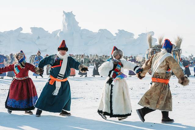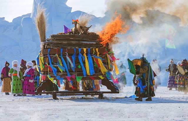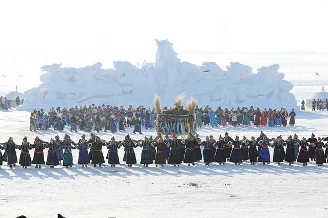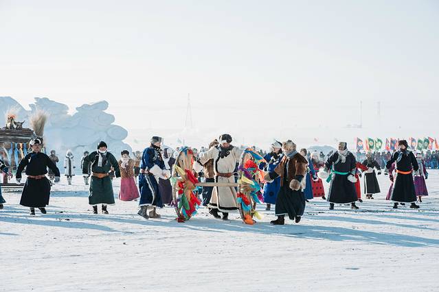 从开幕的“祭苏鲁锭”仪式到各民族独具特色的歌舞、服装表演和祭火活动,即使在零下30度的低温环境里,大家依然热情满满,千百年的民族文化在冰雪中传承。