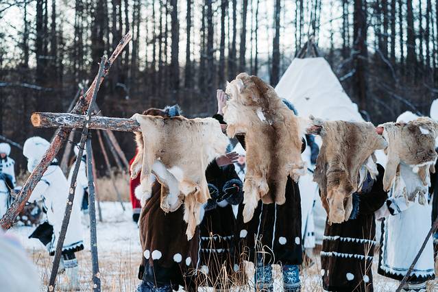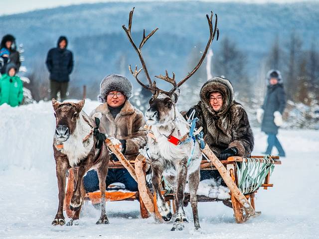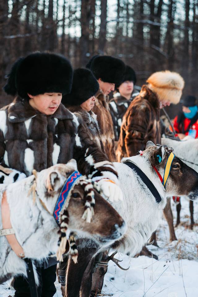 崭新的狍皮帽、羊皮袍、太阳花,平时难得一见的勒勒车、驯鹿车陆续登场。