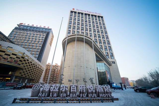 从滑雪场回到海拉尔市区大约一个小时。今天我们入住的是海拉尔百府悦酒店。酒店由德国巴伐利亚国际酒店管理集团管理,距离海拉尔火车站仅10分钟车程,距离海拉尔东山机场也仅20分钟。地理位置优越。