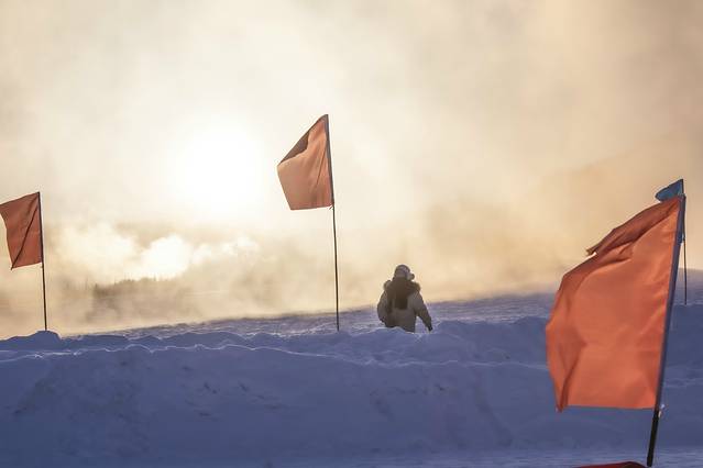 伴随一声枪响,穿好装备的运动员纷纷跑出,呼出的热气瞬间都在发梢眉间结成冰霜,内蒙古真是越冷越热情。