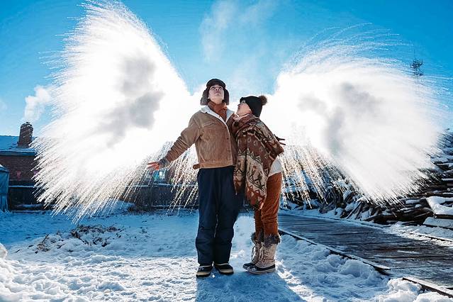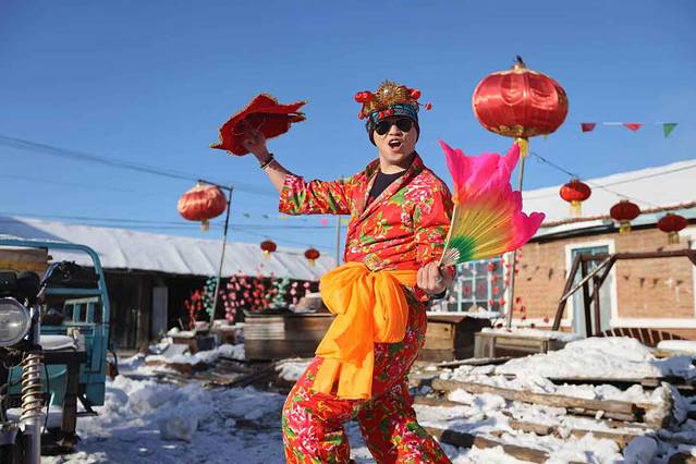 穿上花红柳绿大秧歌服棉袄,自带表情包?端一杯热水泼水成冰,回到室内坐上热炕头,品尝地道的笨鸡炖蘑菇、油炸粘豆包,再啃一串冰糖葫芦,美!