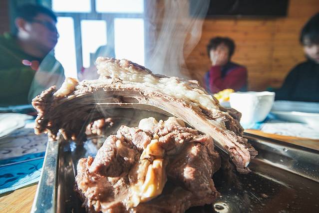 我们的午饭也是在这里。索布德准备了上好的手抓羊、羊腿、羊排、炒牛肉,肥瘦相间的五花肉,看着就让人口水直流。