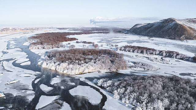 大家赶紧要司机停车,往河边奔去,在阳光的照耀下,蜿蜒的河边,雾凇的美难以言喻。