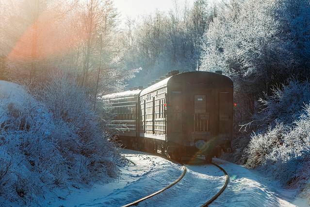 1.冬季阿尔山4点就日落了,如果是下午到达,站台一侧是顺光的,出站就逆光了。