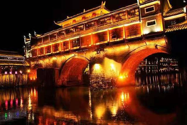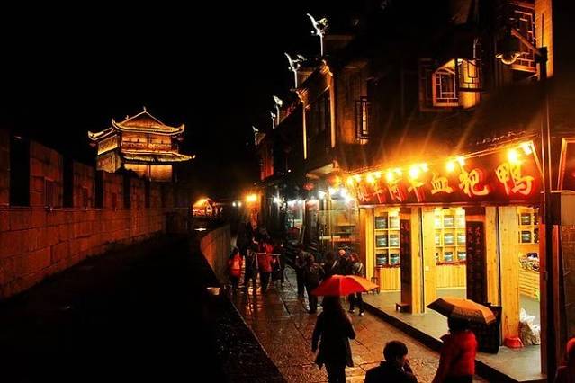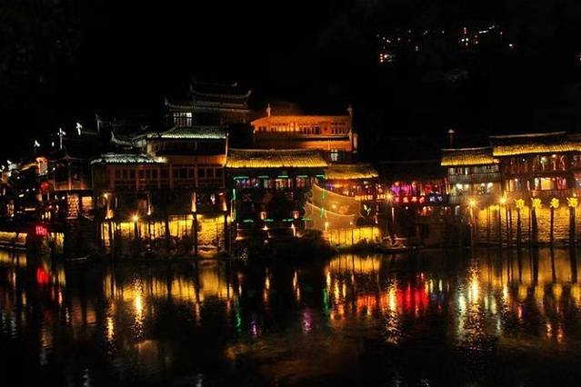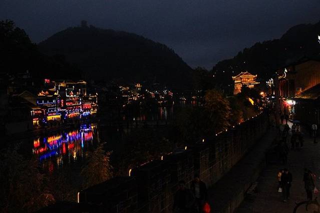 夜幕降临,凤凰古城开始上演另一完全不同的华丽篇章。