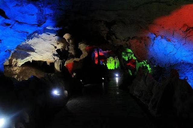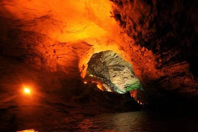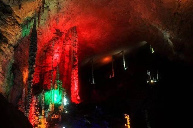 黄龙洞,享有“世界溶洞奇观”“世界溶洞全能冠军”“中国最美旅游溶洞”等顶级荣誉,典型喀斯特岩溶地貌,也被称为“地下魔宫”,洞中有洞、洞中有山、山中有洞、洞中有河,“洞外洞”、“ 楼外楼 ”、“天外天”、“山外山”,盘根错节,在五色灯光映衬下,漫步其间,如入人间仙境。