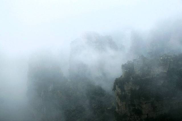 云雾缭绕的迷魂谷,可是云雾太大,像天下第一桥,定海神针、 千里相会 完全看不到。