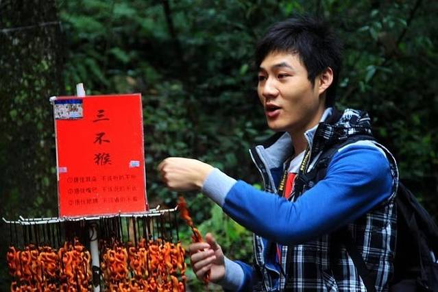 金鞭溪有很多猴子,也是被游人喂叼了嘴,成了山里的土霸王。朋友买的三不猴,非礼勿言,非礼勿视,非礼勿听。