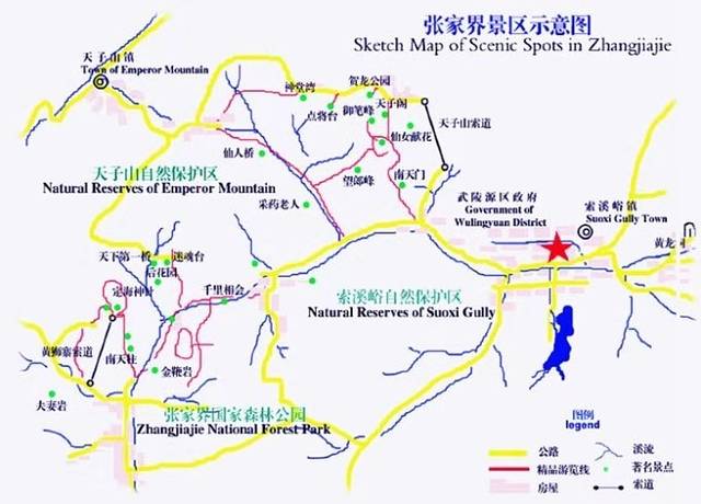 推荐路线:国家森林公园——金鞭溪——十里画廊——天子山——袁家界(天下第一桥、迷魂台、后花园)—— 天门山 —— 猛洞河漂流