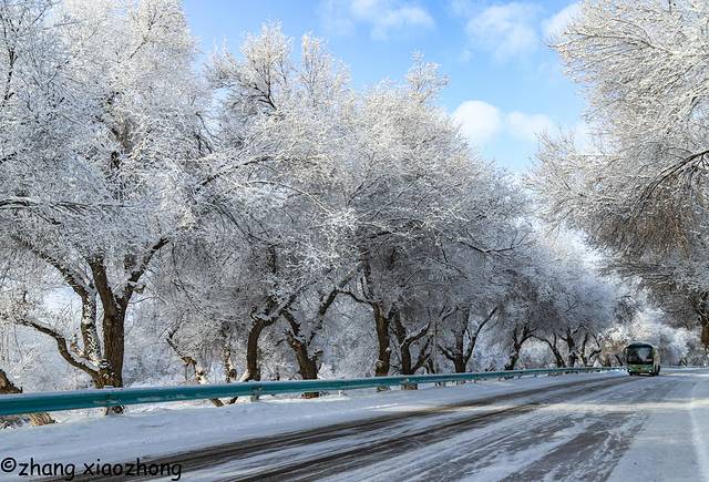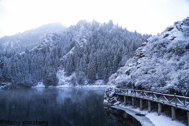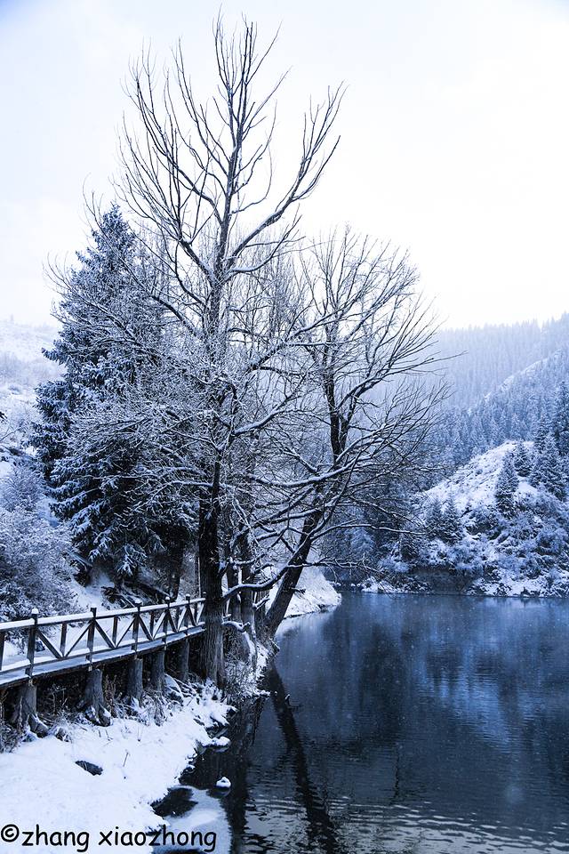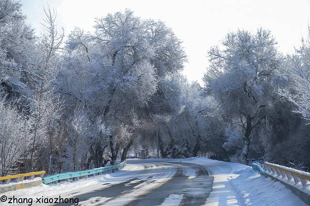 一般的游客去天池都是经由乌鲁木齐,而我们前一晚住在了昌吉市区,又由于下雪,第二天赶往天池的路途花了3个多小时。正常的话需要2小时就够了,但这一路上的风景也是超美的,白雪皑皑的景象像极了童话故事中的世界,此时此刻特别想问自己“我的白雪公主在哪里?”