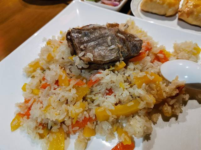 抓饭:主要用新鲜羊肉、胡萝卜、洋葱、清油、羊油和大米制作,新疆本地的正宗抓饭一般是不放孜然粉、山楂、酱油的,根据所在地食材的品质和个人的口味可以酌量添加自己喜欢的配料,有的里边还有杏干、葡萄干和干果等东西。