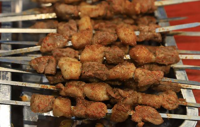 烤包子:烤包子主要是在馕坑烤制,皮用死面擀薄,四边折合成方形。包子馅用羊肉丁、羊尾巴油丁、洋葱、孜然粉等原料。把包好的生包子贴在馕坑里,十几分钟即可烤熟,皮色黄亮,入口皮脆肉嫩。现在多是烤箱制作。