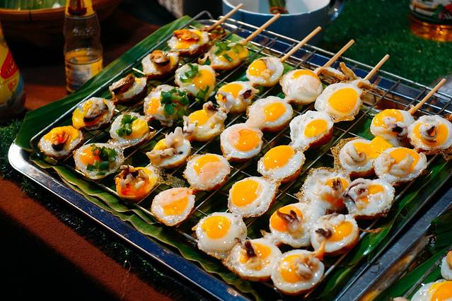 周六夜市主打的就是众多的美食,从下午五点多开始,各摊位就开始各就各位了,其实当地人会建议大家早一点去,因为有些摊位的食物就准备了那么多,卖完了就撤了。这边小吃的价格都在10-20泰铢左右,非常便宜,可以一次吃个爽。