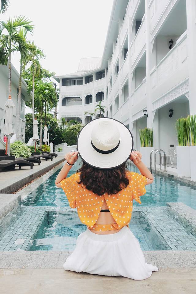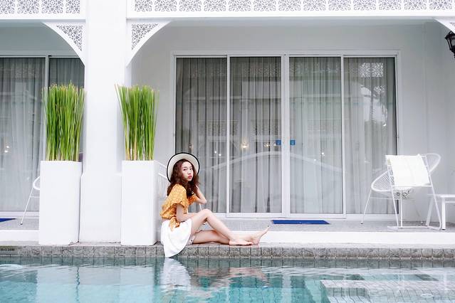 酒店的面积并不大,但是当走进酒店的大门,世间的喧嚣仿佛瞬间被隔绝了,酒店主体建筑被纯白包裹着,细长条的露天泳池,是个打卡拍照的好地方,尤其是对于住在一层的住客,阳台直接连接泳池,拍照超级方便的哦。(一层客房数量有限,喜欢拍照的同学们一定要提前预定。)