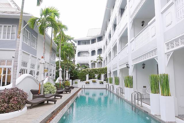 泰北的阳光把酒店建筑纯净的白色照的很是耀眼,同样是位于清迈老城区里的这家酒店,地理位置非常的优越,步行到塔佩门仅两三百米,酒店周围寺院和购物的小店很多哦。